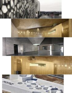 Los materiales —hormigón, paneles prefabricados GRC, superficies sobrias— buscan transmitir la idea de una “factoría del arte”, un entorno donde la creación fluye con libertad y donde el espacio se adapta al proyecto, no al revés.
